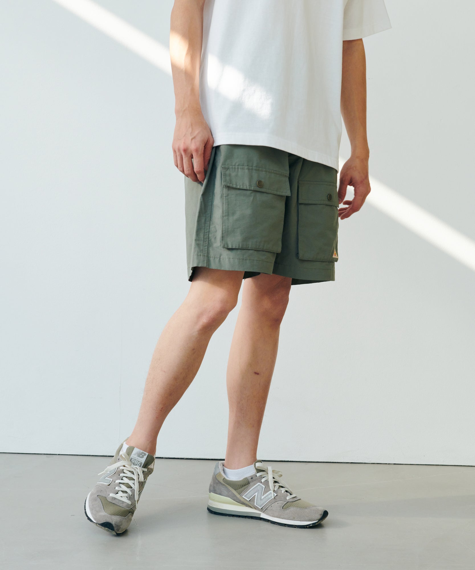 ■現代的なワイドシルエットのブッシュパンツデザイン。