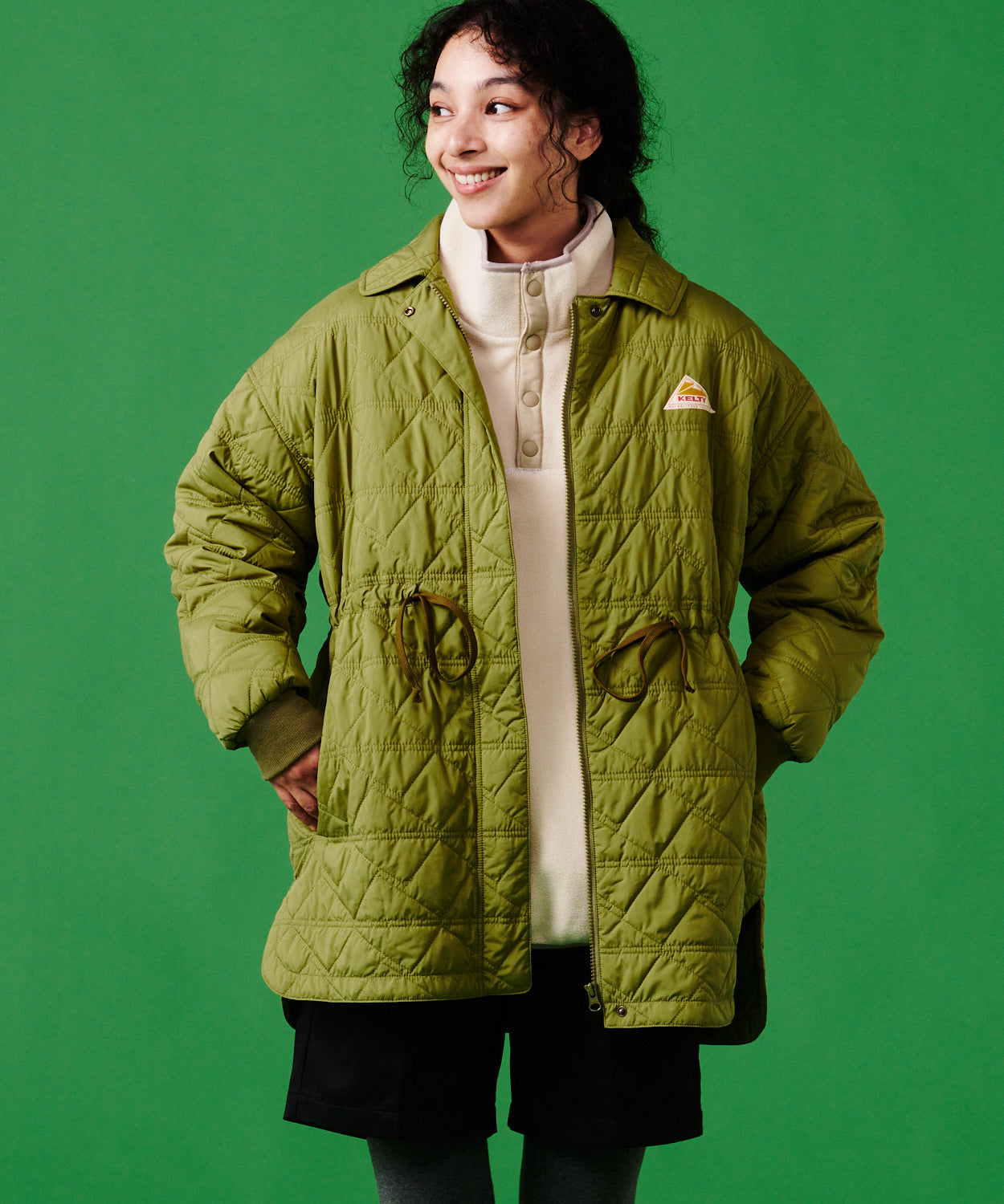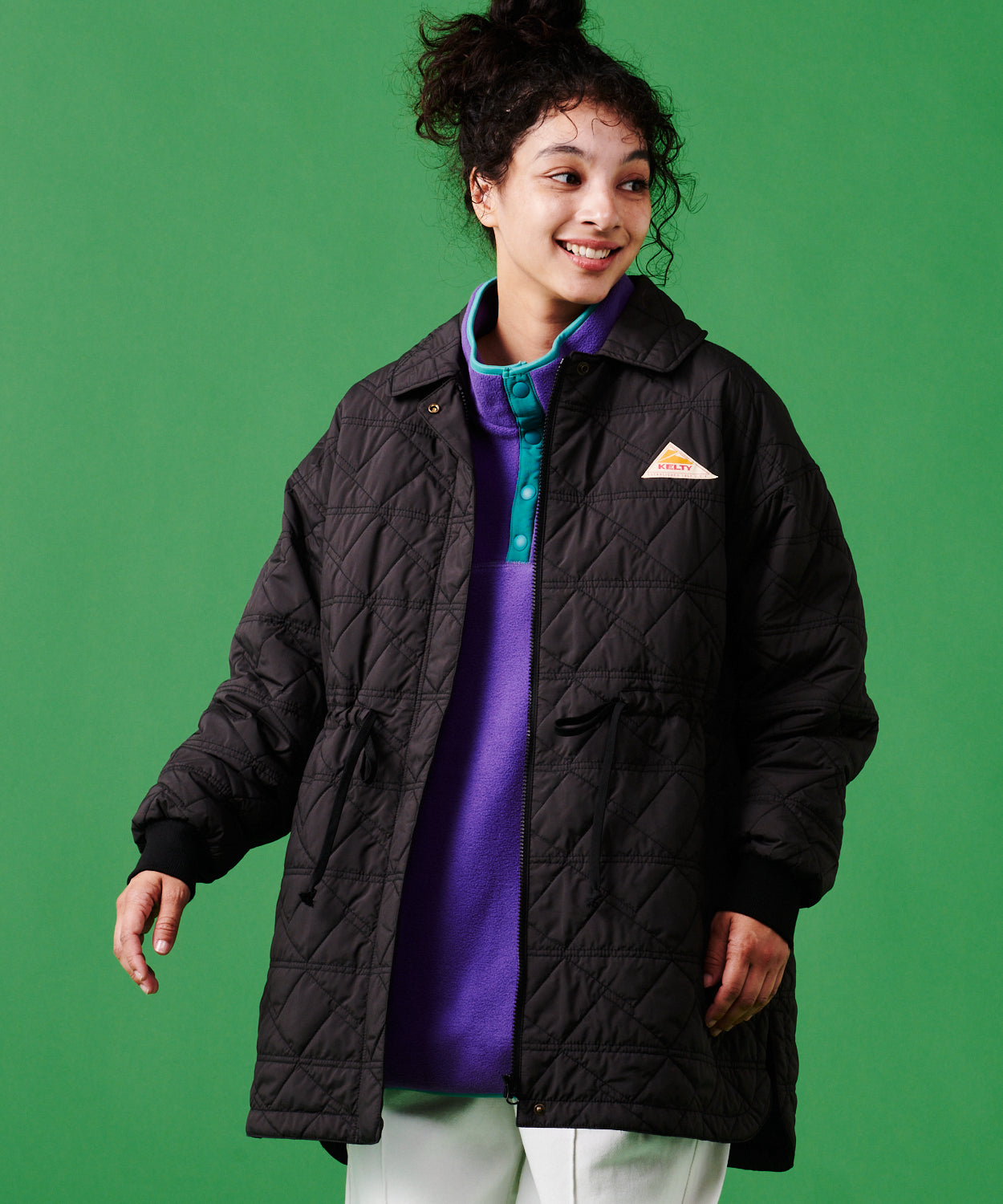 KELTYロゴのトライアングルを落とし込んだデザインのキルティングステッチ。軽量でマットな素材を使用し、肌なじみが良く柔らかな着心地。