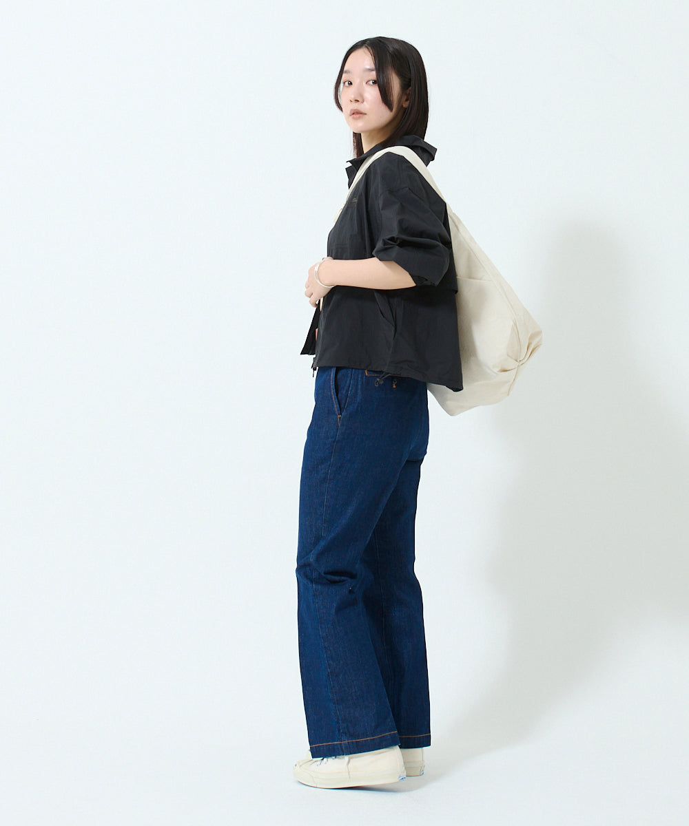 薄型のナイロンワッシャー素材。柔らかな質感でライトな履き心地。急な雨風を防ぐ撥水仕様。軽くて持ち運びに便利!